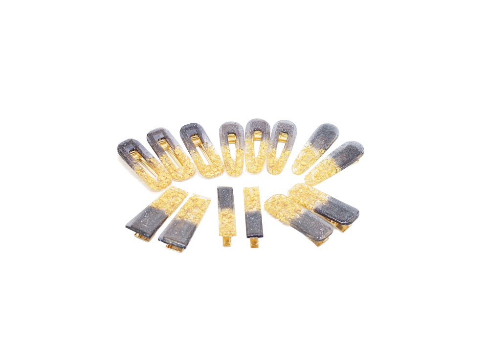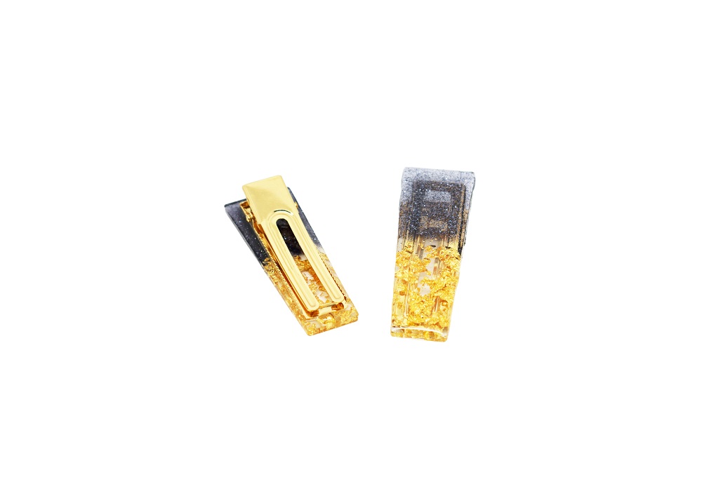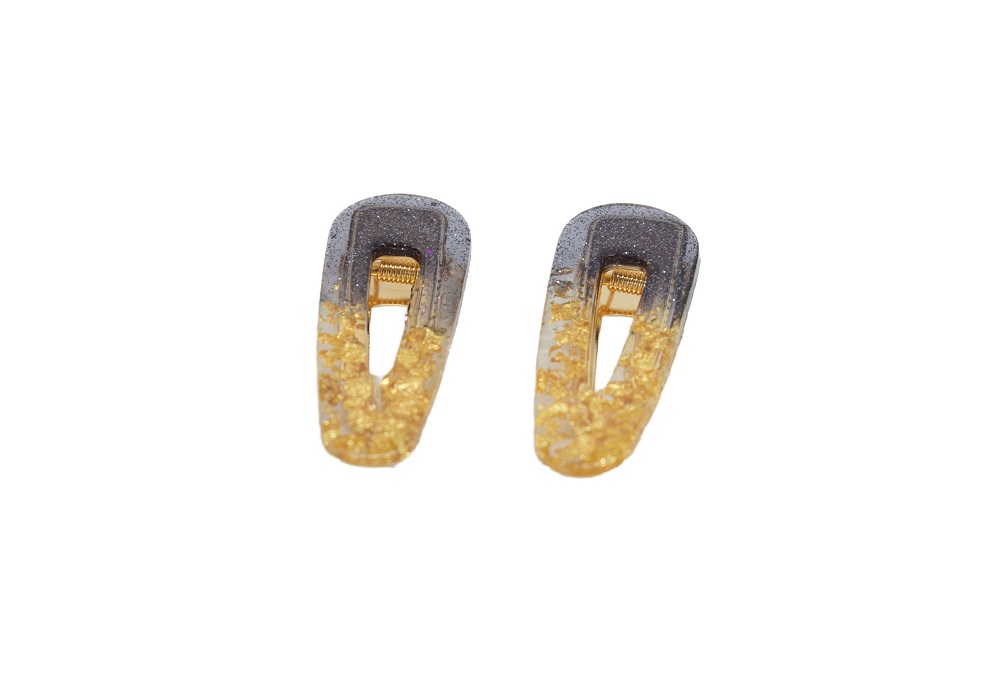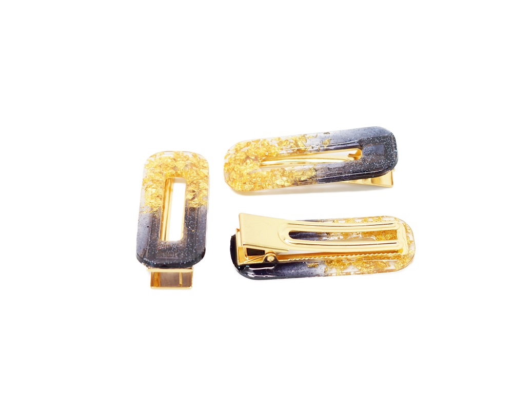Barrettes cheveux résine noir et or – Evergold