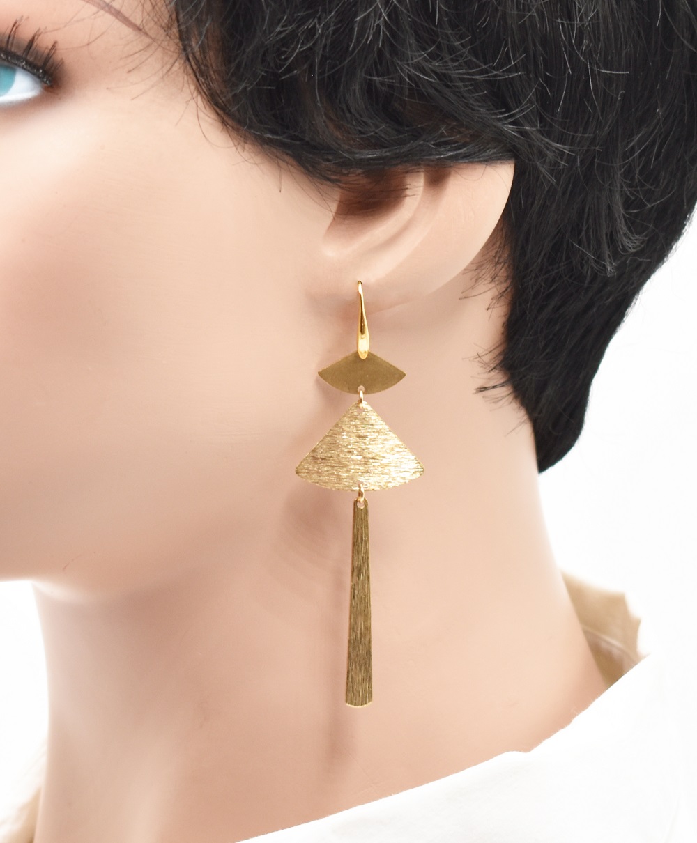 Boucles d’oreilles crochets géométriques.  Ces boucles d’oreilles font parties de la collection géométrique. Très originales, avec un mélange de matières et aussi de formes.  Un mariage de matériaux tel que l’acier ainsi que de laiton doré et texturé.