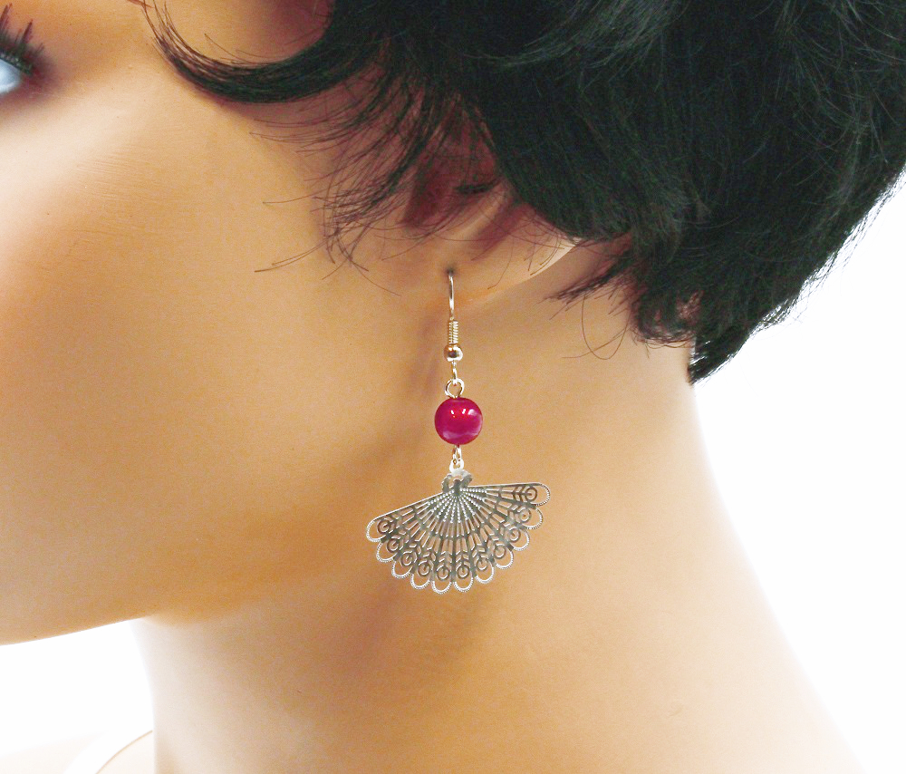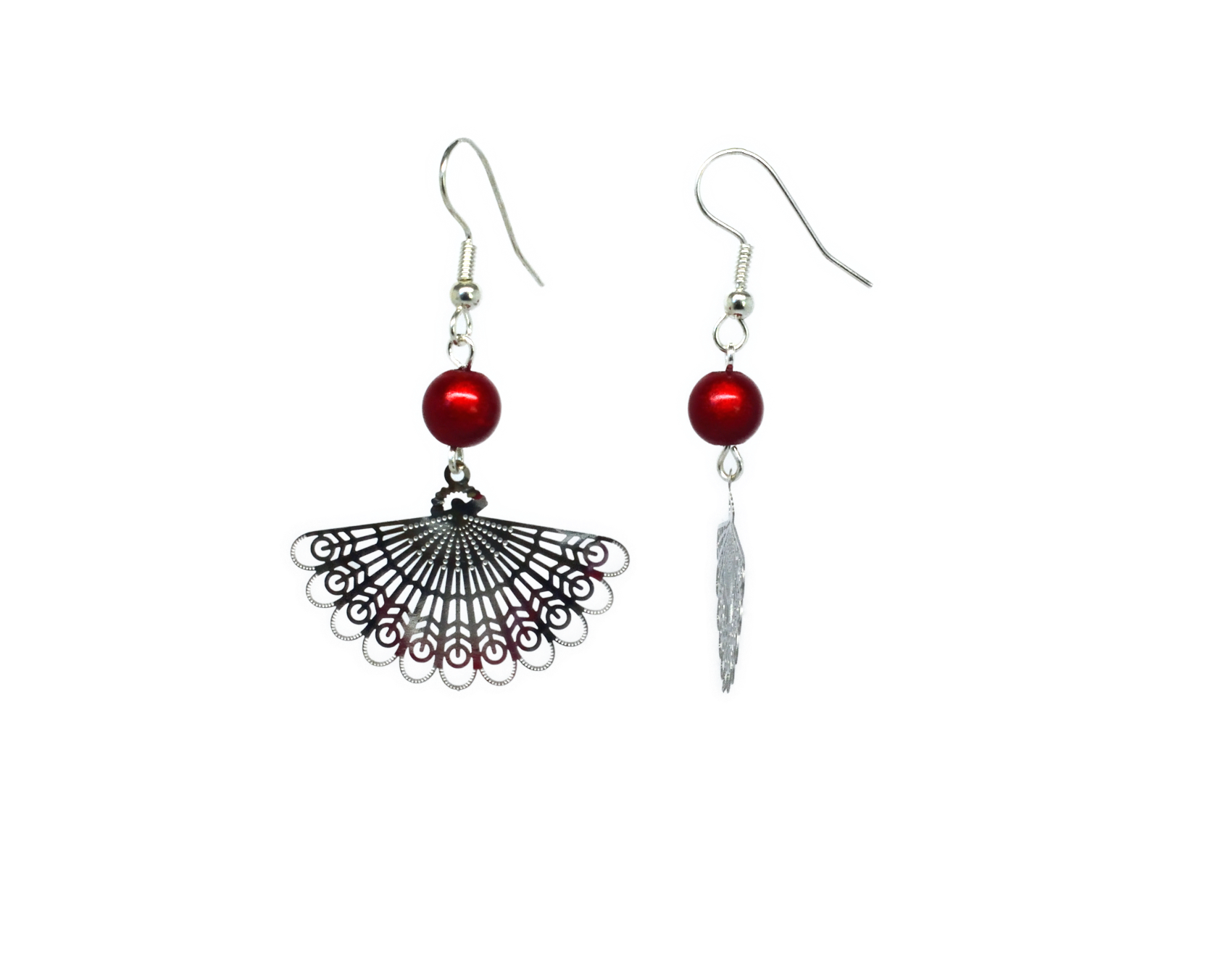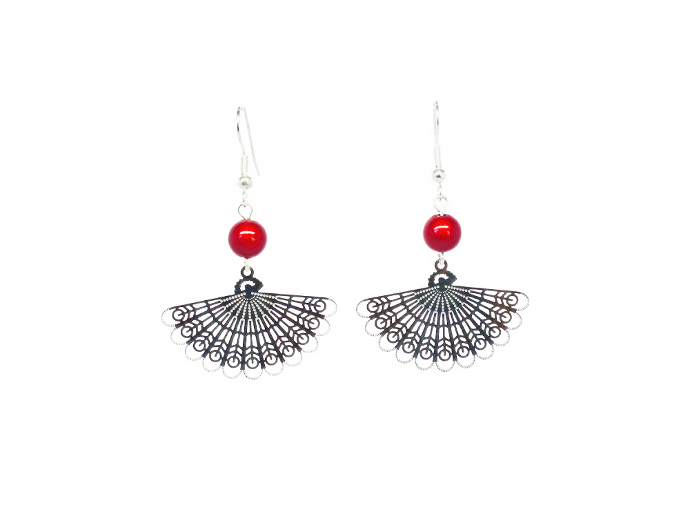 Elles sont en métal argenté avec des perles magiques rouge flamboyant ainsi qu’une très jolie estampe en forme d’éventail.