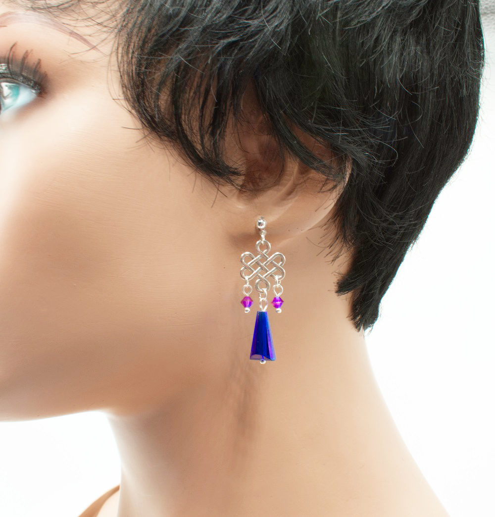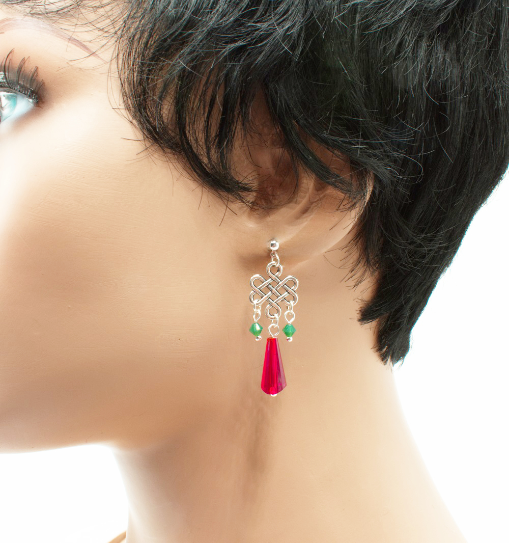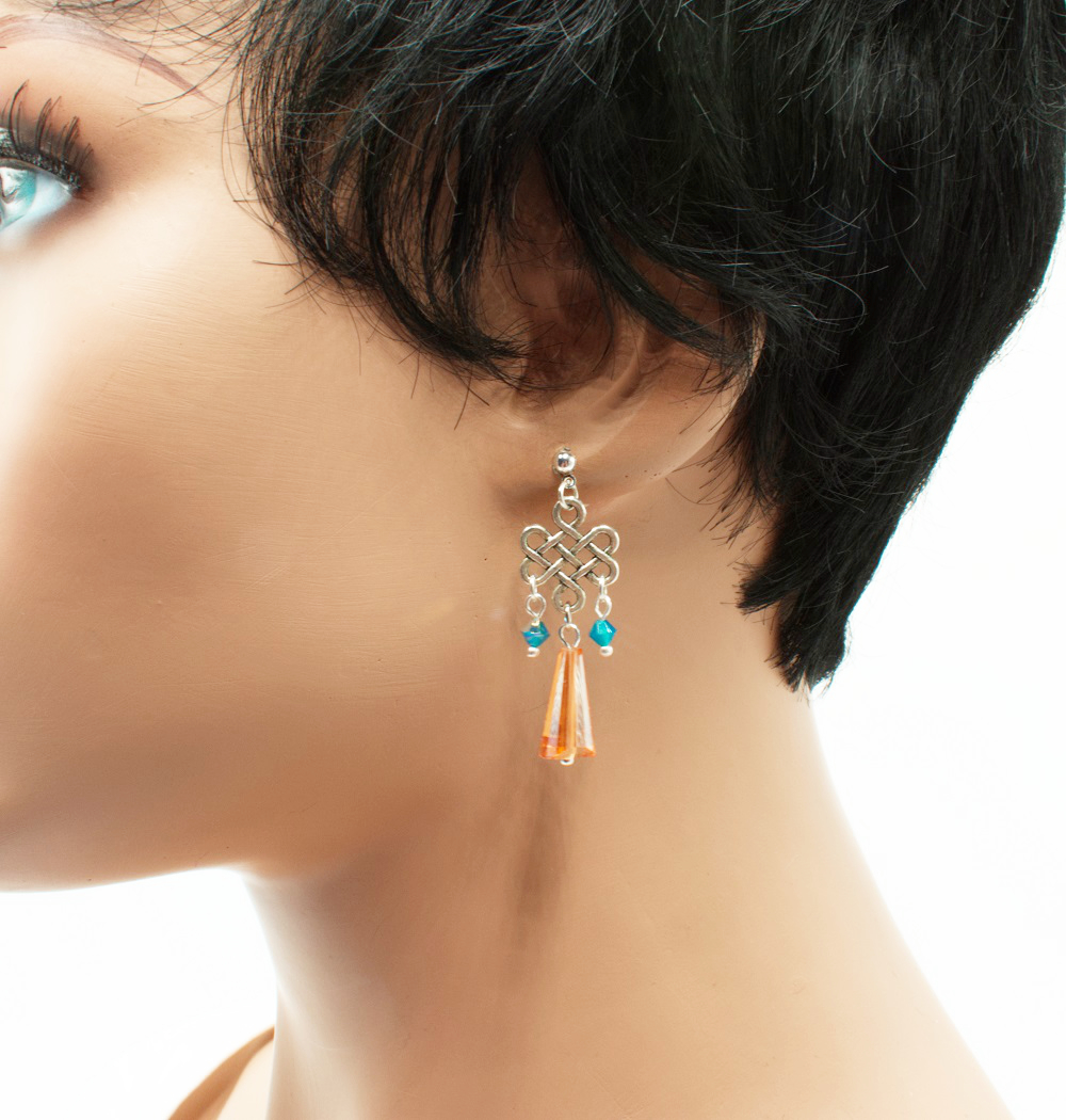 Boucles d’oreilles pendantes gouttes. Ces boucles d’oreilles puces rondes argentées, avec un mélange de matières et aussi de formes. Le mariage du nœud chinois, de la goutte à facette et des perles pendantes rappellent les pampilles des coiffes chinoises. Ici proposés dans plusieurs coloris.