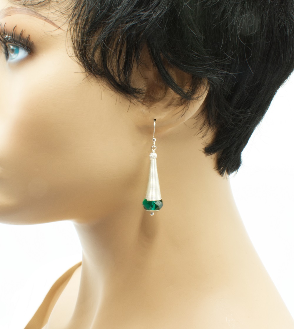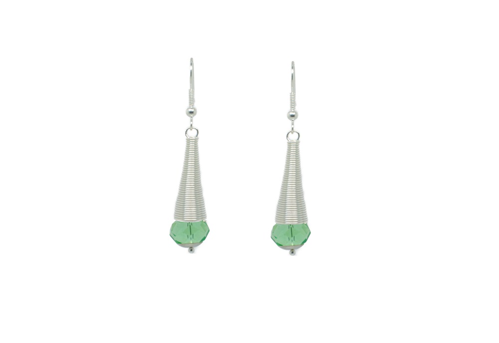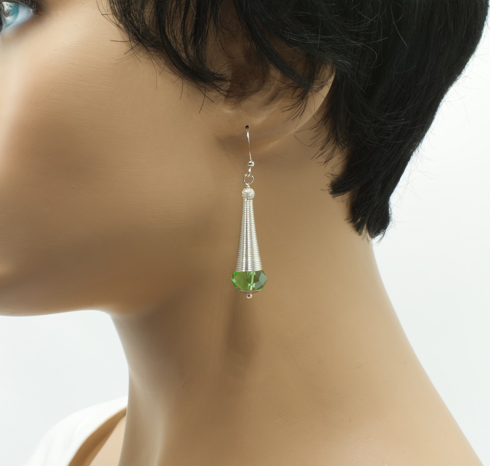 Boucles d’oreilles spirale argentée existent dans plusieurs coloris, ici pourpre, vert tendre, noir, vert émeraude.. Les perles sont des perles verres de bohème, la lumière traverse la perle et brille sur chaque facette. C’est ce qui donne un aspect très lumineux!!!