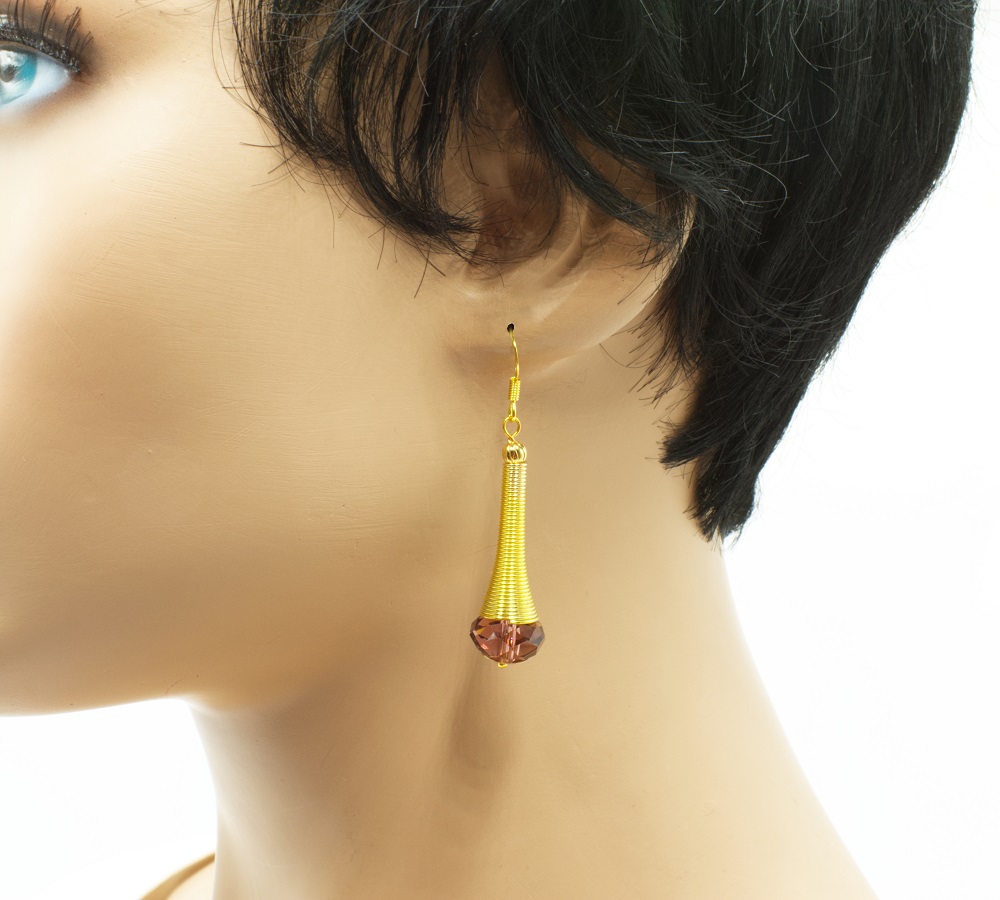 Boucles d’oreilles spirale dorée perles cristal existent dans plusieurs coloris, comme champagne, noir, pourpre et enfin rose. Les perles sont des perles verres de bohème, la lumière traverse la perle et brille sur chaque facettes. C’est ce qui donne un aspect très lumineux!!!