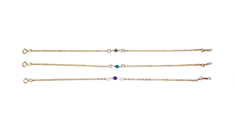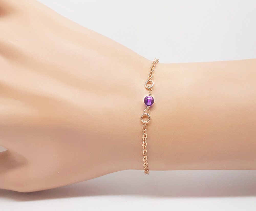 Bracelet chaîne goldfilled très fine et petite perle semi-précieuse.