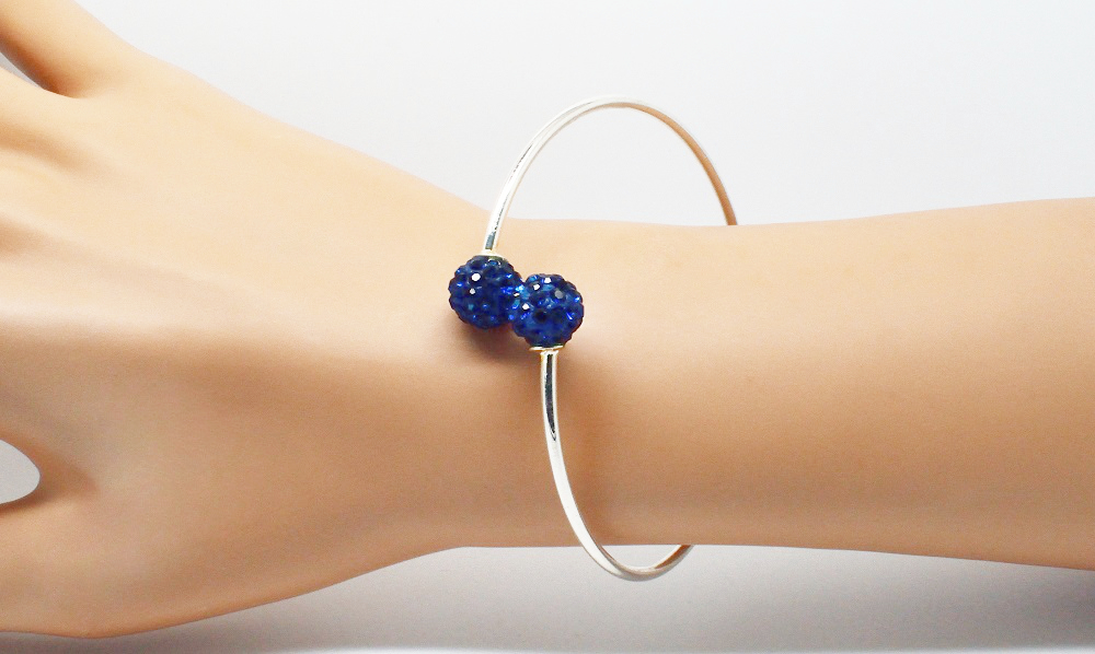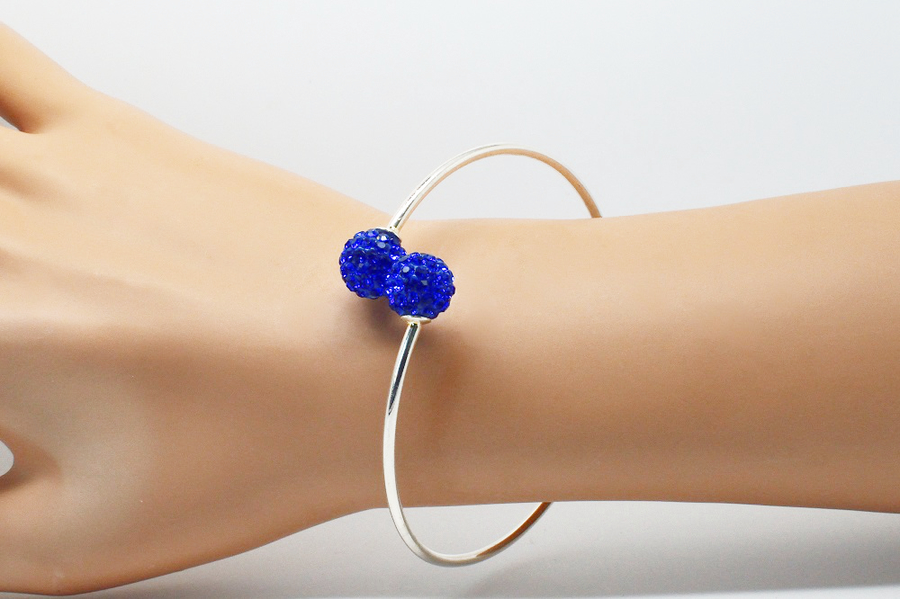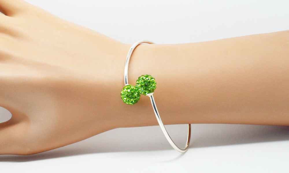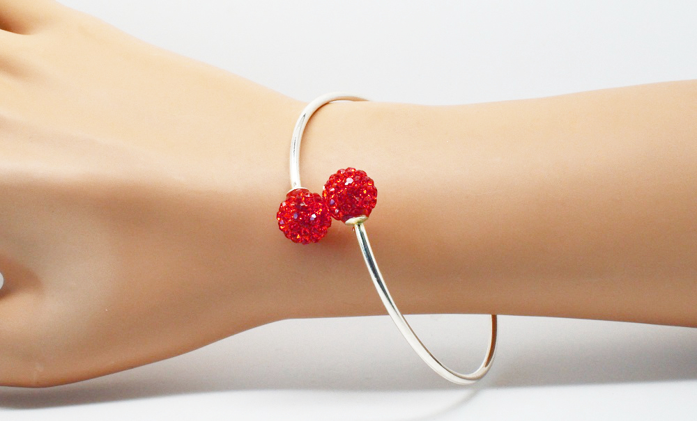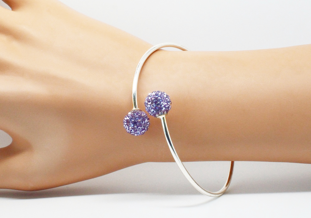 Bracelet jonc argenté perle disco. Angéline Disco – Bracelet jonc argenté rigide, réglable terminé par des perles strass, de couleur. Portez le seul assorti à votre tenue, ou empilé avec vos autres bracelets.