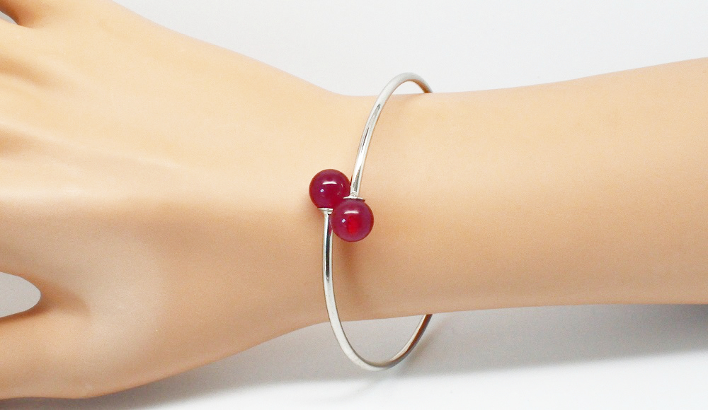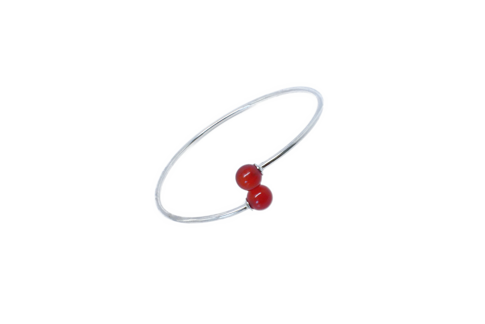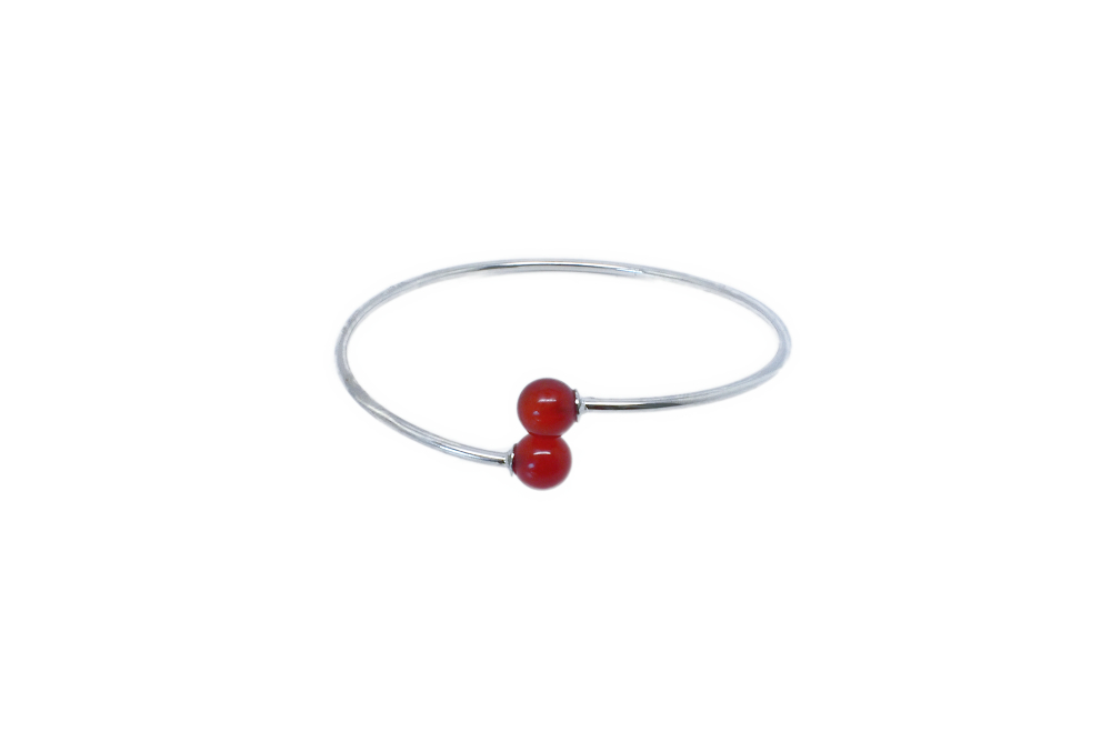 Bracelet jonc pierre semi-précieuse. Bracelet jonc argenté réglable terminé par des perles semi-précieuses. Ici je vous propose en cornaline et en hématite de 8mm.