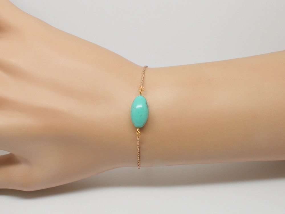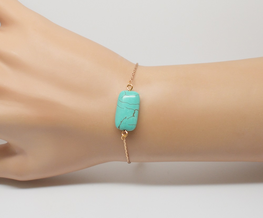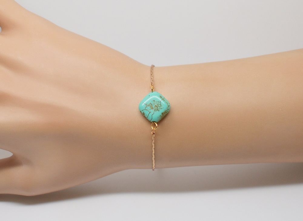 Bracelet laiton doré chaine fine – Noély turquoise