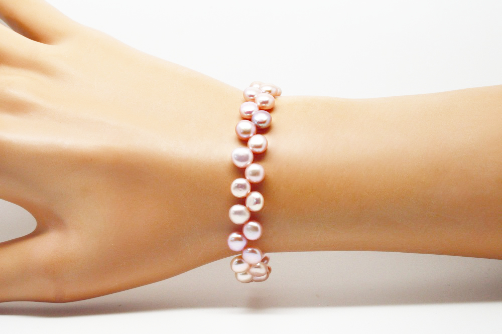 Bracelet en perle d’eau douce rose très fin, très délicat.