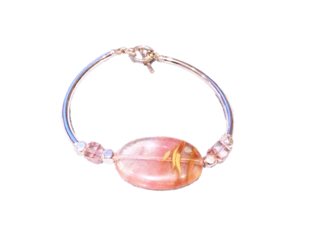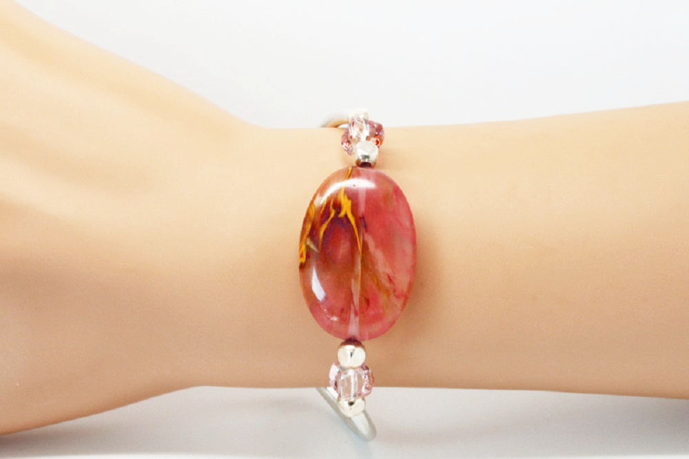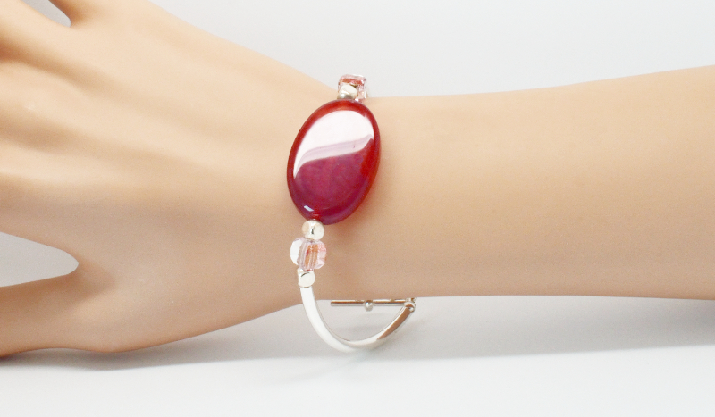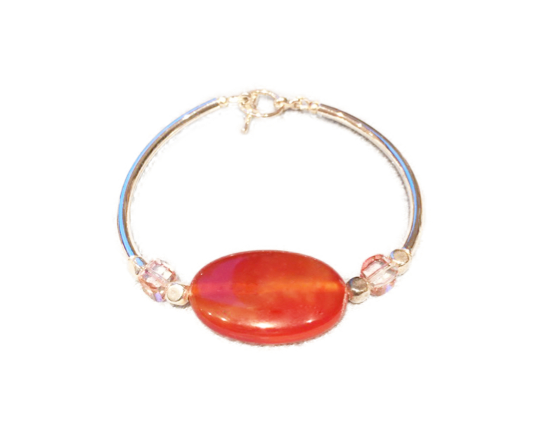 Bracelet original de la collection “Smooth” argenté orné d’un palet en pierre semi précieuse la cornaline (de couleur orangé).