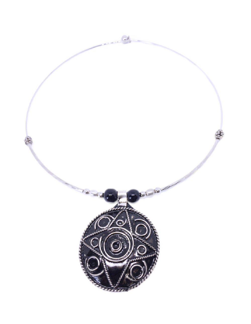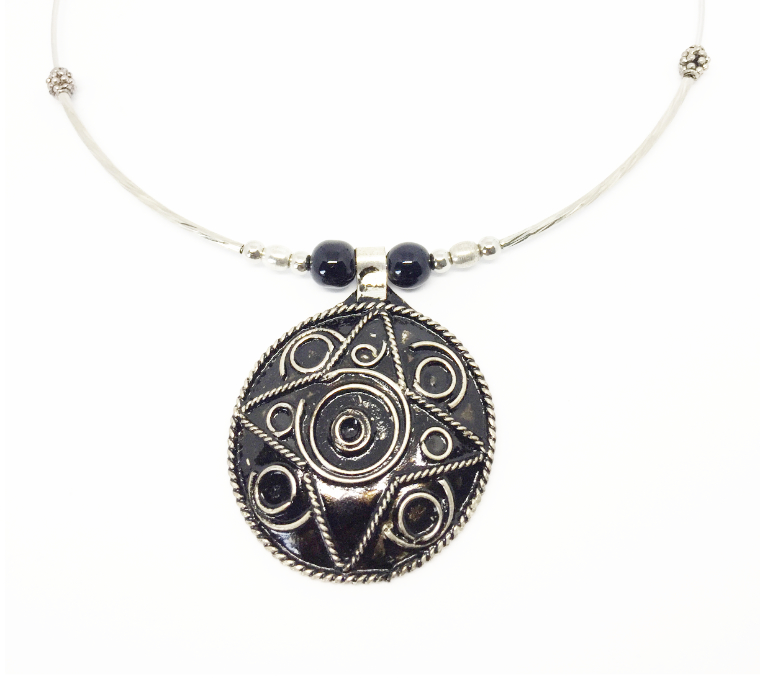 Collier ethnique argenté émail noir – Morocco