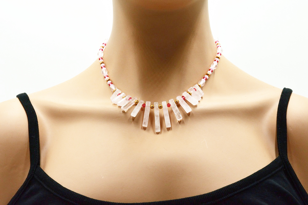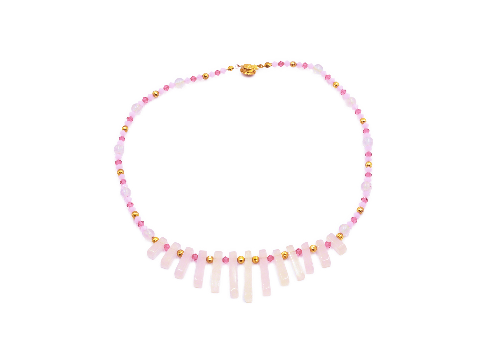 Existe dans plusieurs couleurs en verre mais aussi en pierre semi précieuse : quartz rose en option.