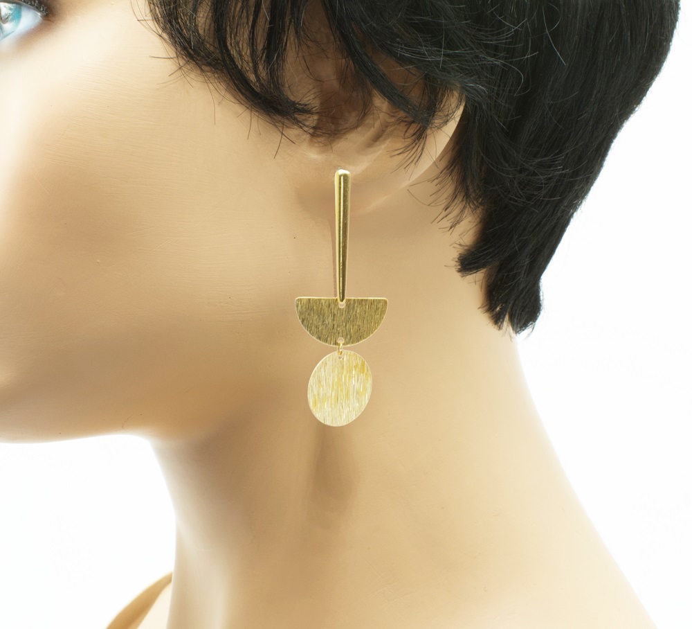 Boucles d’oreilles puces pendantes.  Ces boucles d’oreilles font parties de la collection géométrique. Elles sont originales, avec un mélange de matières et aussi de formes.